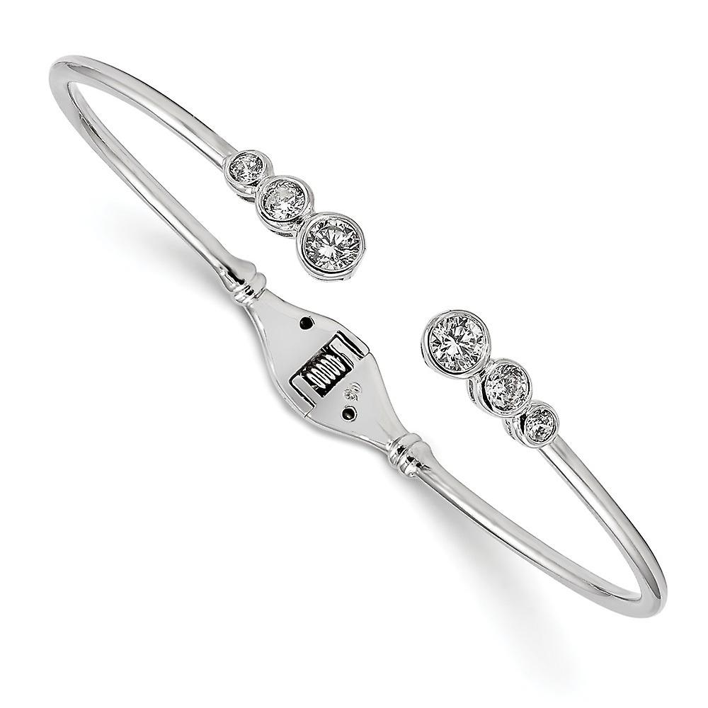 925 Sterling Silver Rhodium Plated Cubic Zirconia Hinged Bangle Cuff Bracelet-Cuff-Bracelet for Women
