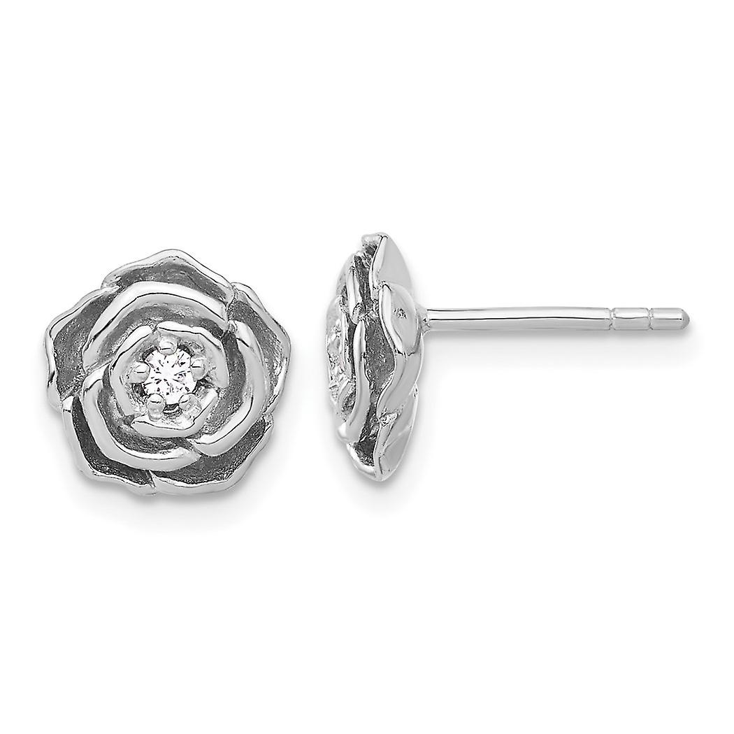 925 Sterling Silver Rhodium Plated Cubic Zirconia Flower Post Earrings 9.7x9.7mm Wide Stud Earring for Women