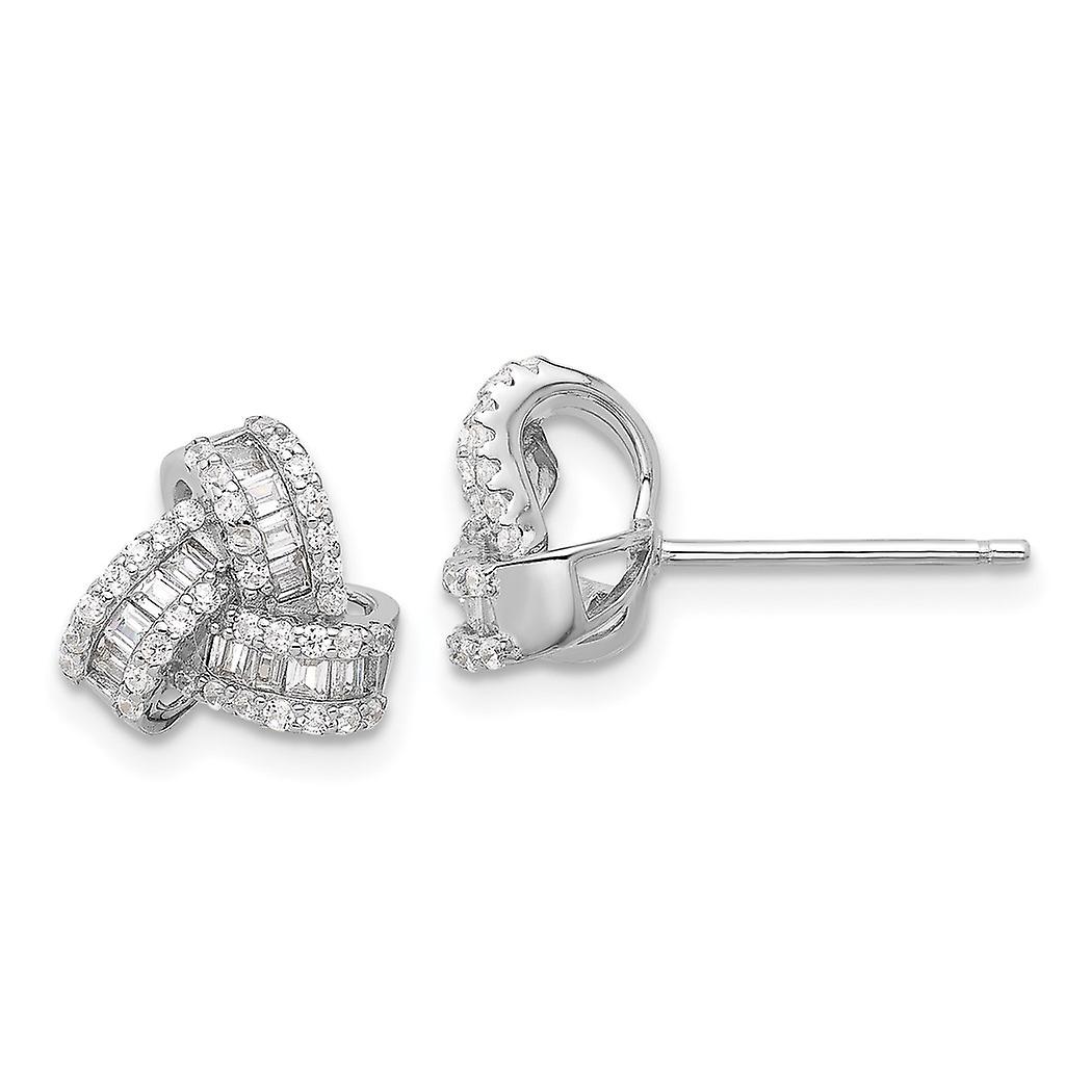 925 Sterling Silver Rhodium Plated Cubic Zirconia Love Knot Post Earrings 10.7x10.7mm Wide Stud Earring for Women