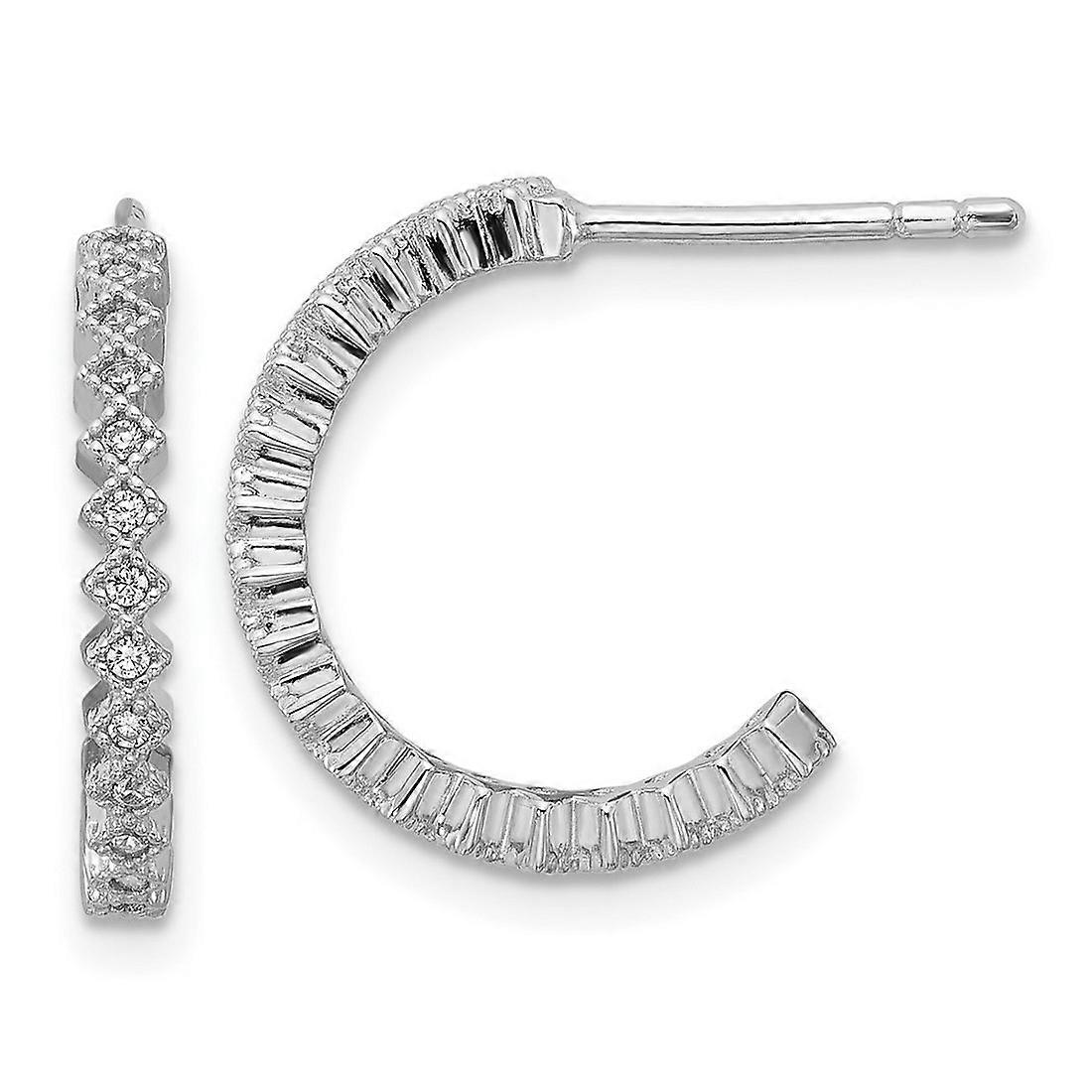 925 Sterling Silver Rhodium Plated Cubic Zirconia J hoop Post Earrings 16.5x16.4mm Wide 2.1mm Thick-Hoop Earring for Wom
