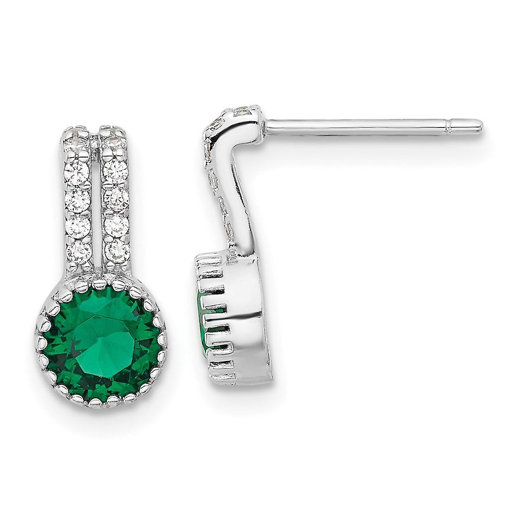 925 Sterling Silver Rhodium Plated Green and White Cubic Zirconia Post Earrings 13.3x6.5mm Wide Stud Earring for Women