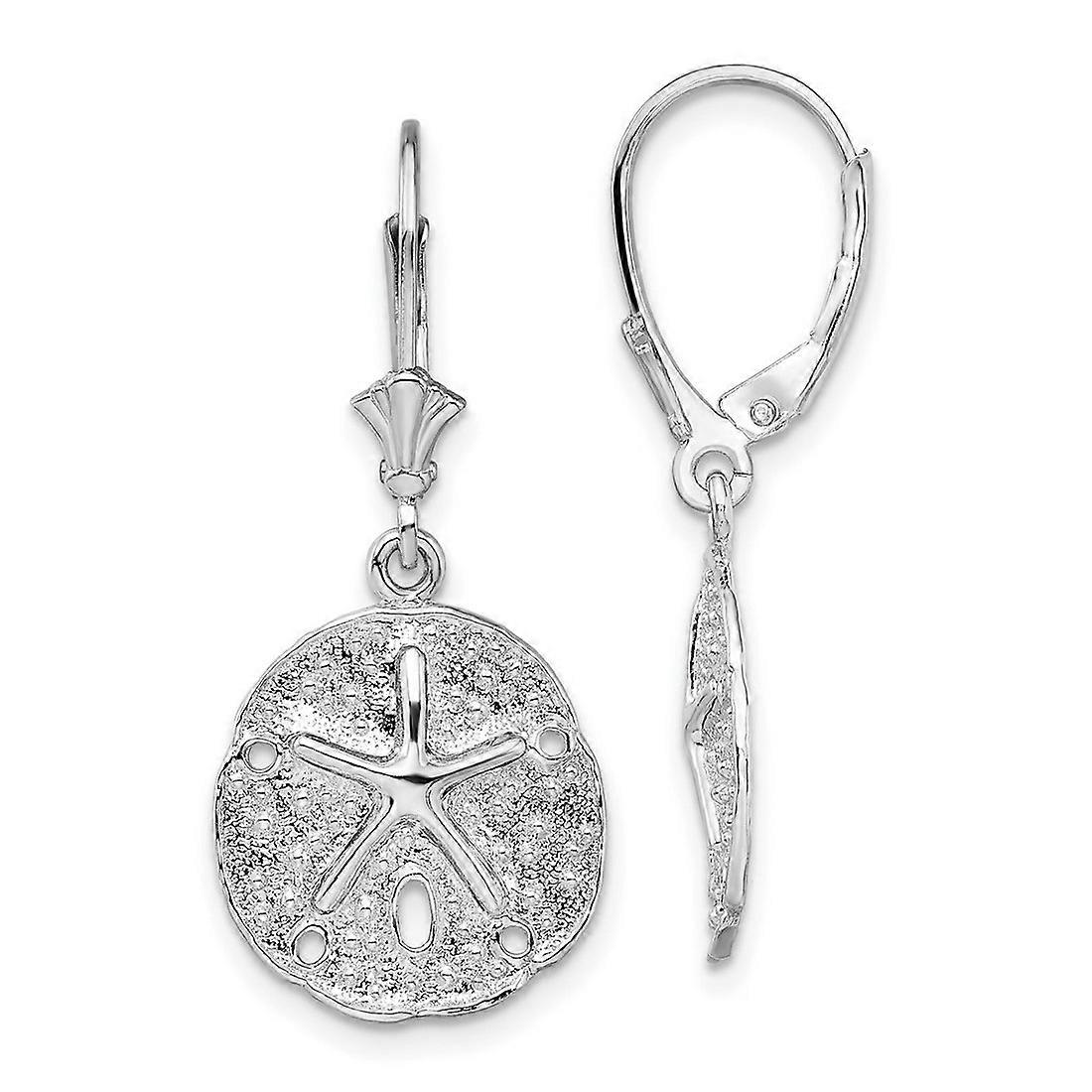 14.11mm Sterling Silver Rhodium-plated Sand Dollar Starfish Leverback Earrings - Measures 33.25x14.11mm Wide - 3.4 Grams In Sterling Silver in Plated Metal - - Width of Item: 14.11 mm - Length of Item: 33.25 mm - Earring Closure: Leverback - Earring Type: Drop & Dangle - Finish: Polished -