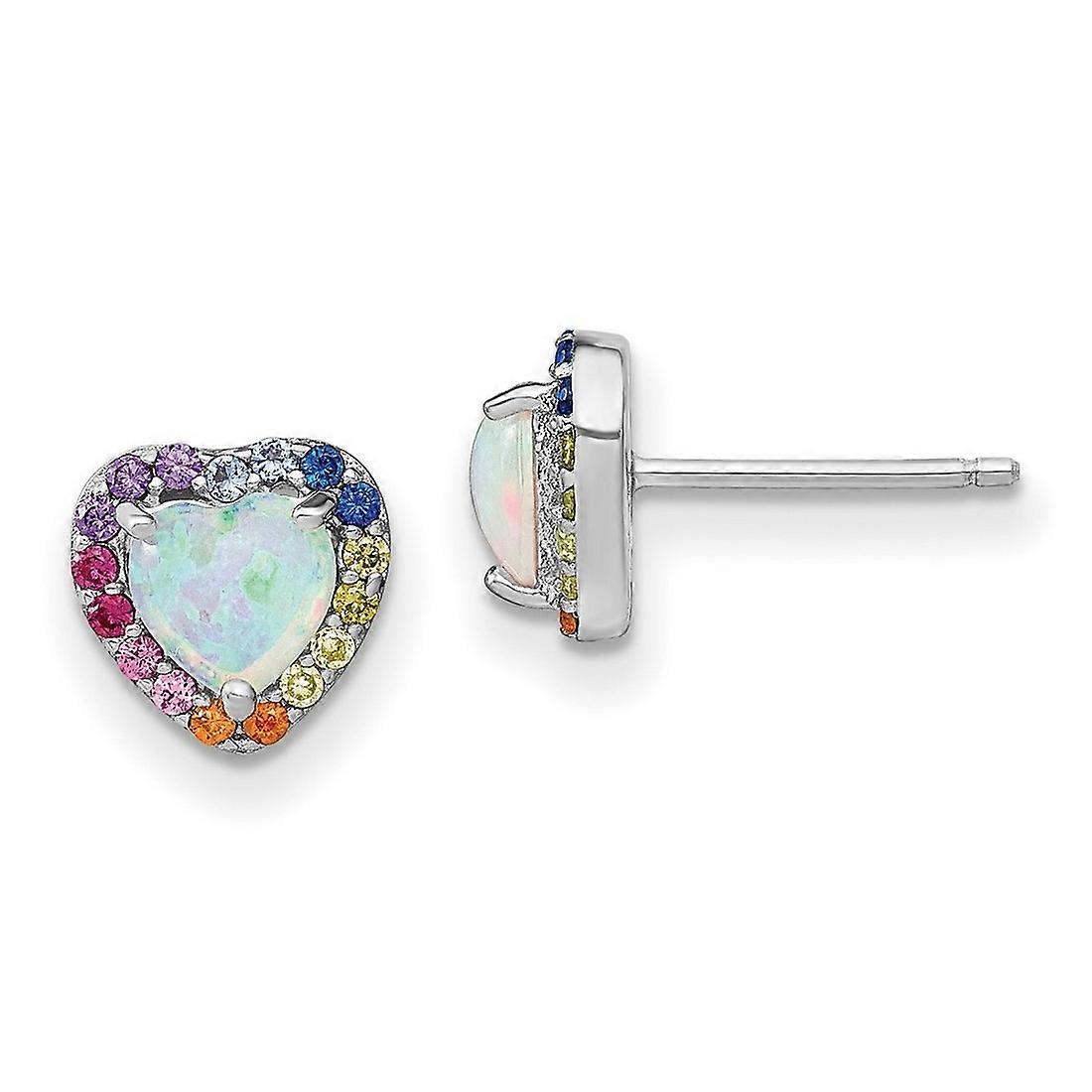 925 Sterling Silver Rhodium Plated Simulated Opal and Colorful Cubic Zirconia Love Heart Post Earrings 8.55x8.8mm Wide S