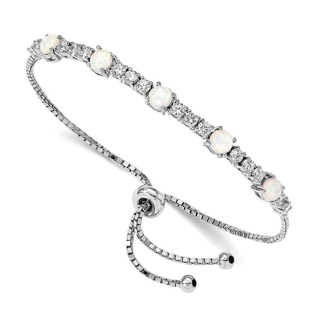 925 Sterling Silver Rhodium Plated Simulated Opal and Cubic Zirconia Adjustable Bracelet 5.17mm Wide Link-Bracelet for W