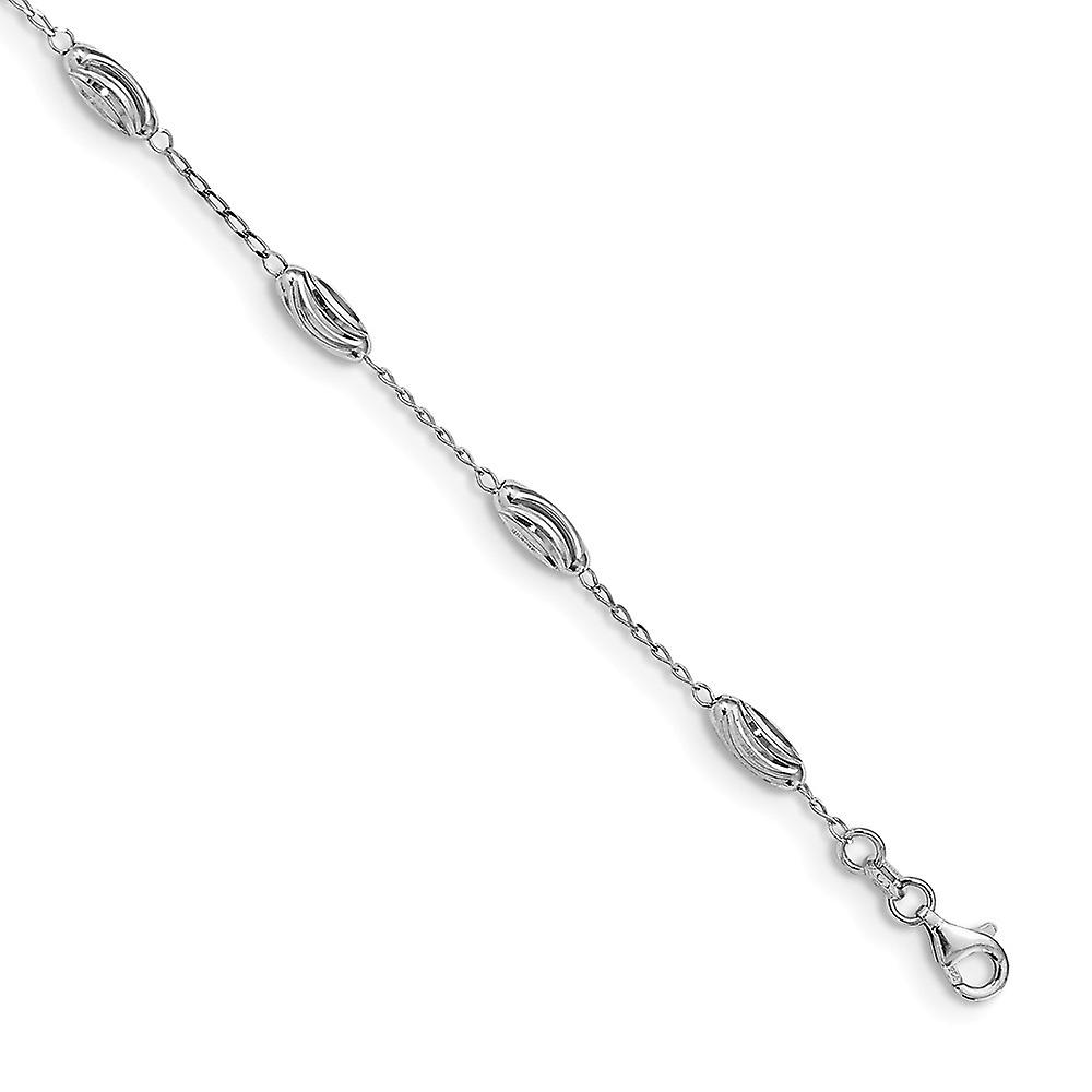 925 Sterling Silver Rhodium Plated Sparkle Cut Oval Beads Bracelet 7 Inch Link-Bracelet for Women