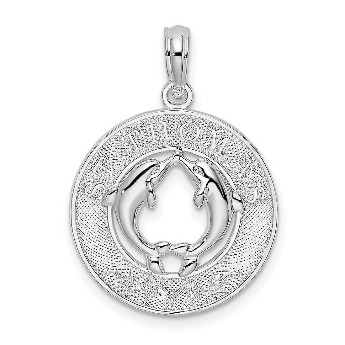 925 Sterling Silver Rhodium Plated St. Thomas Circle With Dolphins Pendant Necklace 26.33mm long-Pendant for Women