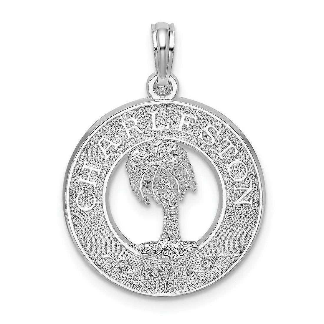 925 Sterling Silver Rhodium Plated Charleston Circle With Palm Tree Pendant Necklace 25.35mm long-Pendant for Women