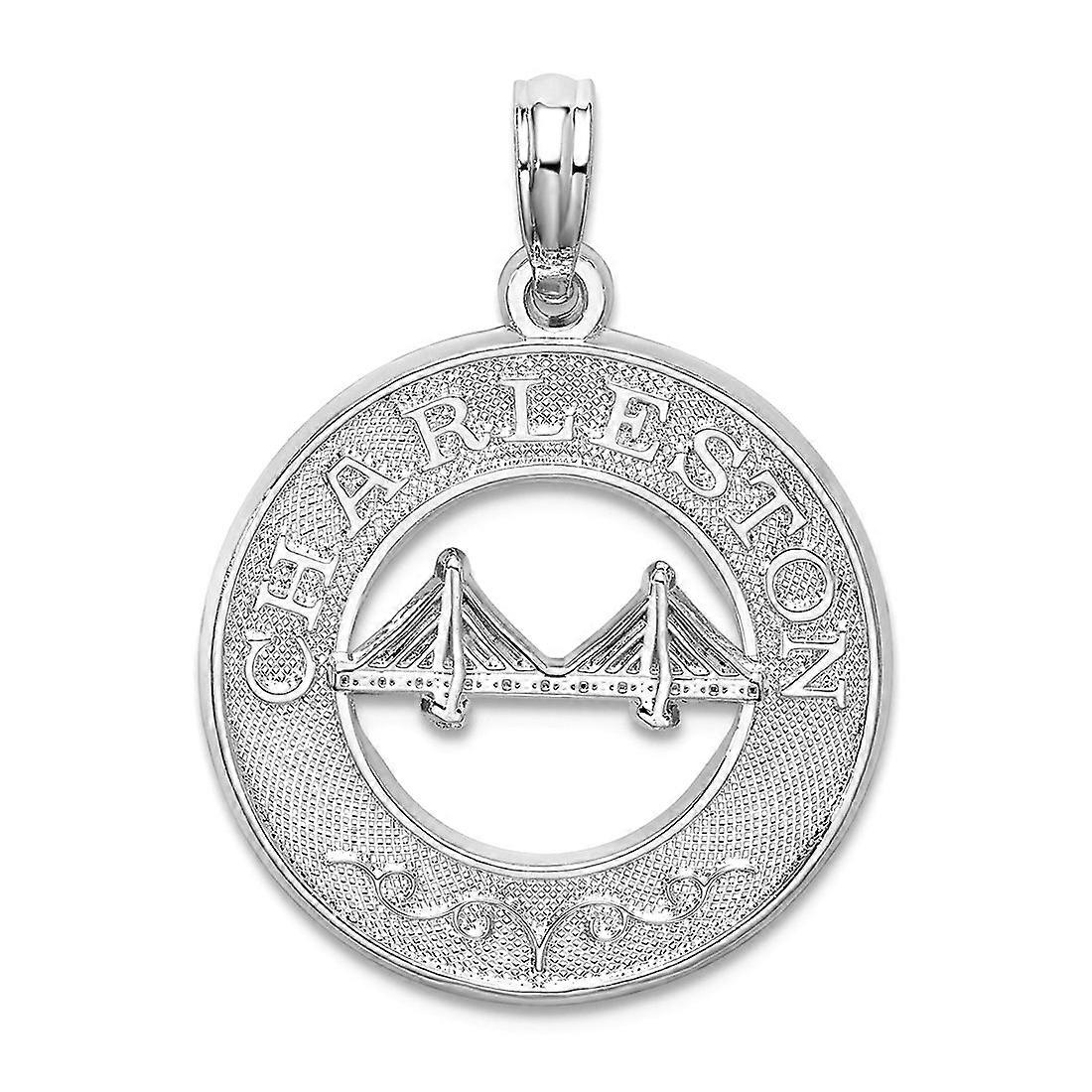 925 Sterling Silver Rhodium Plated Textured Charleston With Bridge Pendant Necklace 25.42mm long-Pendant for Women