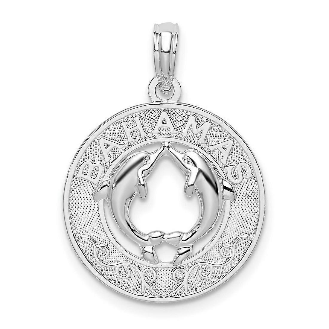 925 Sterling Silver Rhodium Plated Textured Bahamas With Dolphins Pendant Necklace 24.36mm long-Pendant for Women