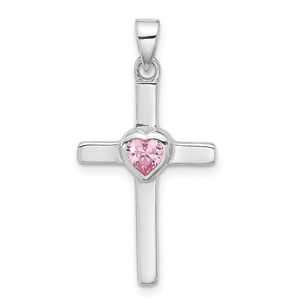 925 Sterling Silver Rhodium Plated Pink Love Heart Cubic Zirconia Religious Faith Cross Pendant Necklace 25.1x14.91mm Wi