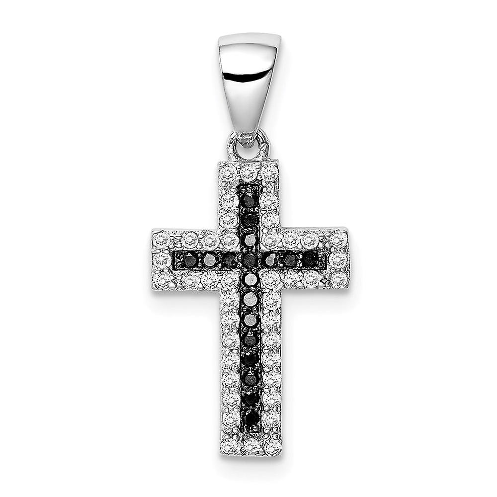 925 Sterling Silver Rhodium Plated Black and Clear Cubic Zirconia Religious Faith Cross Pendant Necklace-Pendant for Wom