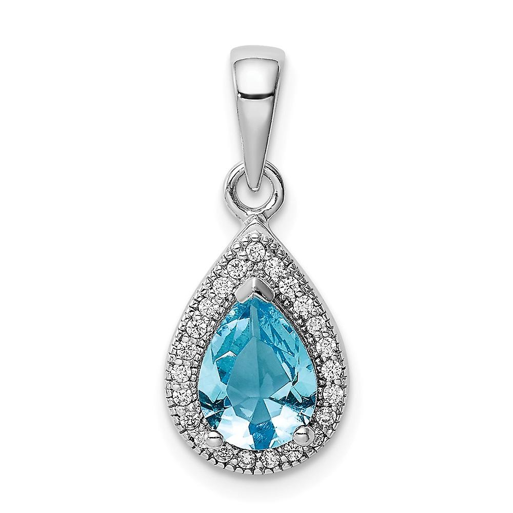 925 Sterling Silver Rhodium Plated Blue and Clear Cubic Zirconia Pendant Necklace-Pendant for Women