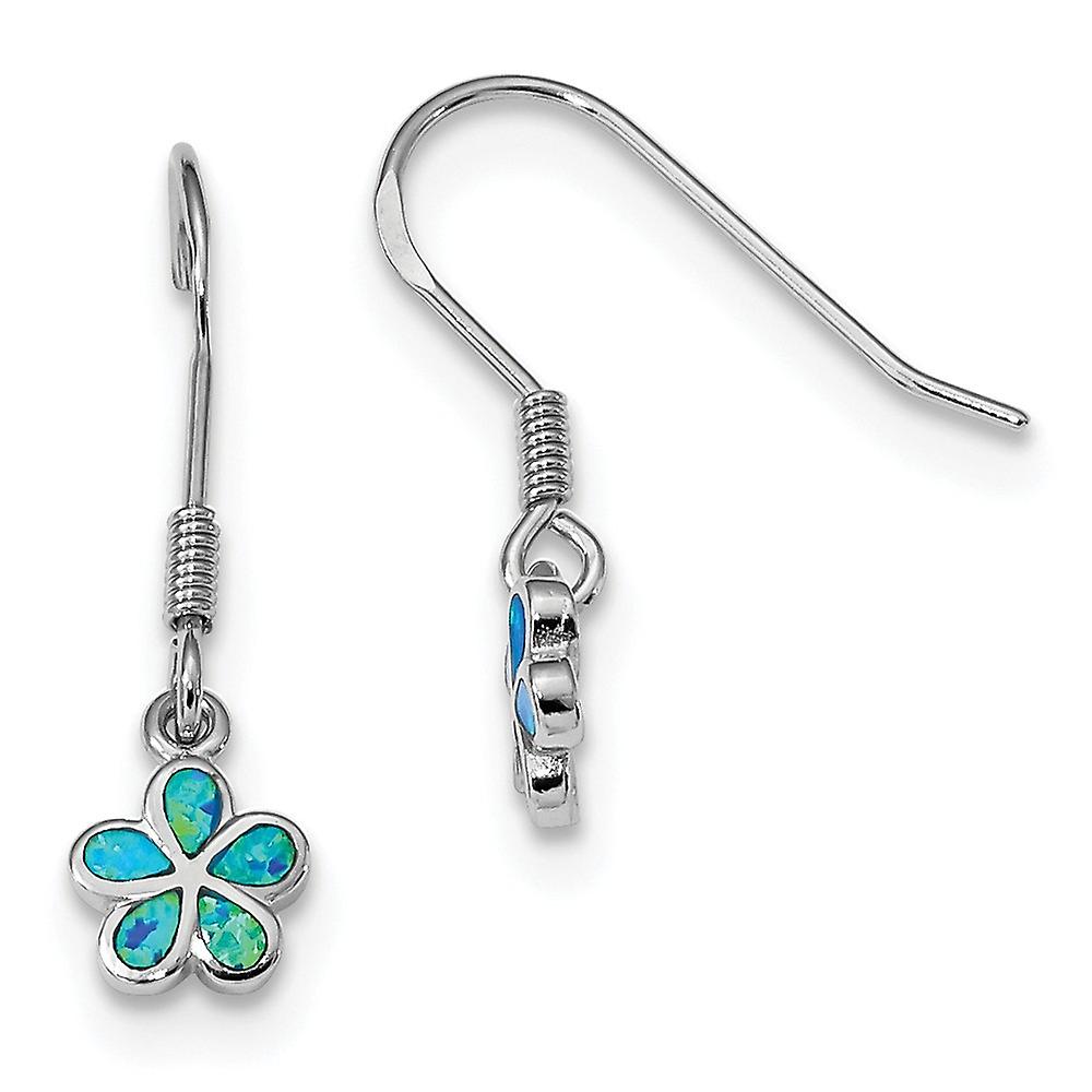925 Sterling Silver Rhodium Plated Blue Simulated Opal Flower Earrings 25.8x7.6mm Wide Stud Earring for Women