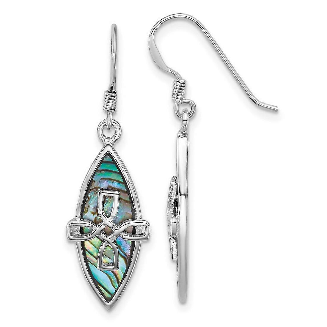 925 Sterling Silver Rhodium Plated Polished Abalone Religious Faith Cross Earrings 37.2x10.7mm Wide Stud Earring for Wom