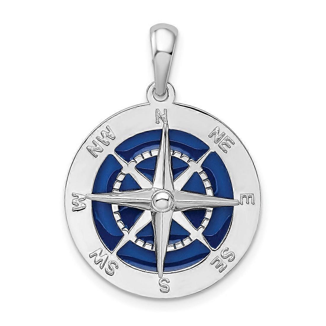925 Sterling Silver Rhodium Plated Polished Enameled Lg. Compass Pendant Necklace 29.25mm long-Pendant for Women