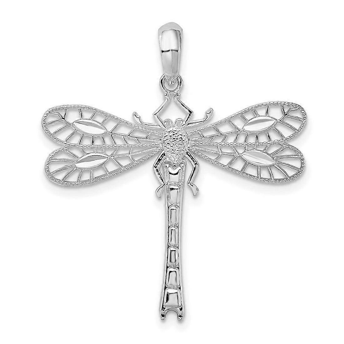 925 Sterling Silver Rhodium Plated Polished Cut out Dragonfly Pendant Necklace-Pendant for Women