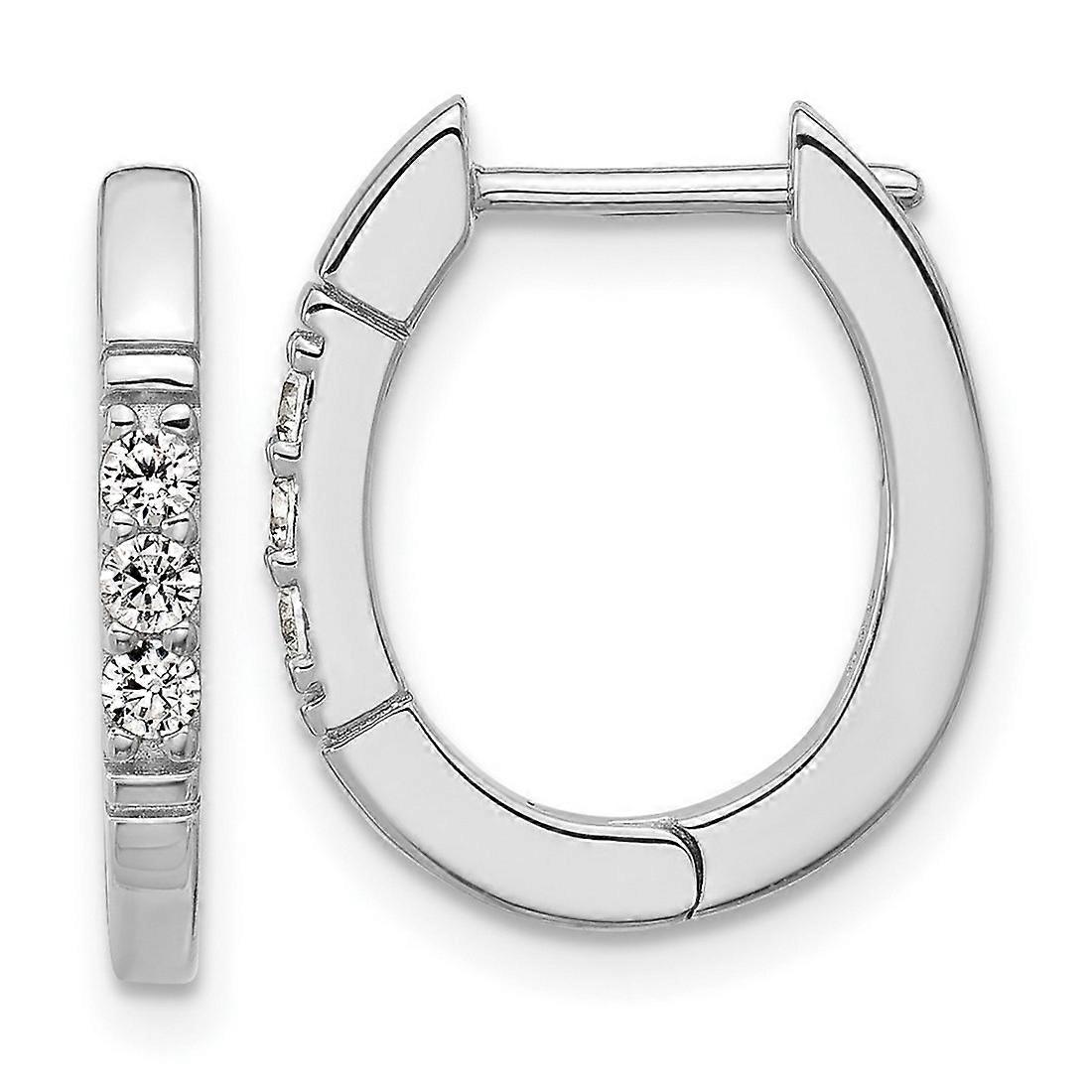 925 Sterling Silver Rhodium Plated Polished Cubic Zirconia Oval Hinged Hoop Earrings 17x14.7mm Wide 2.15mm Thick-Hoop Ea