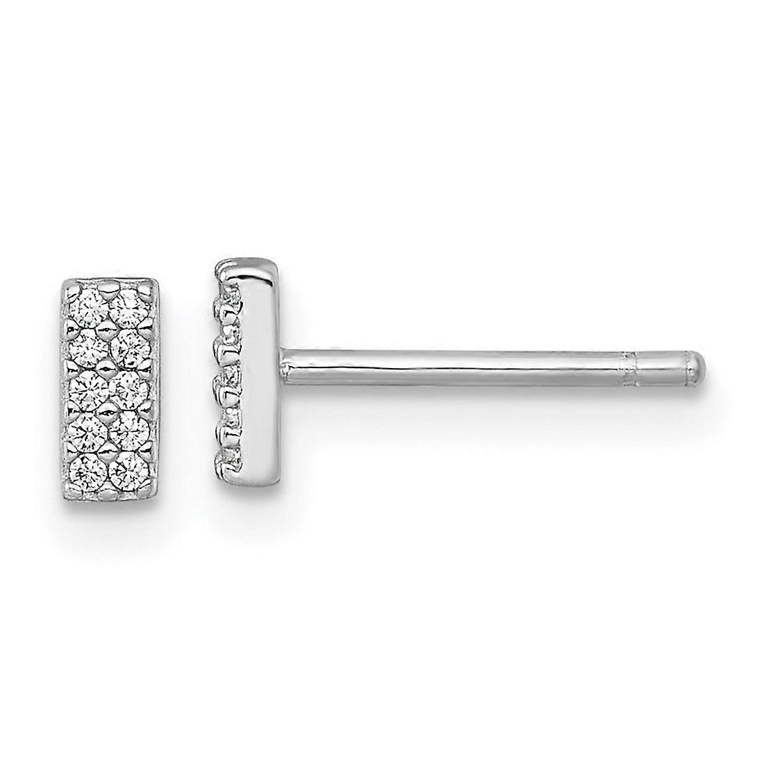925 Sterling Silver Rhodium Plated Polished Cubic Zirconia Bar Post Earrings Stud Earring for Women