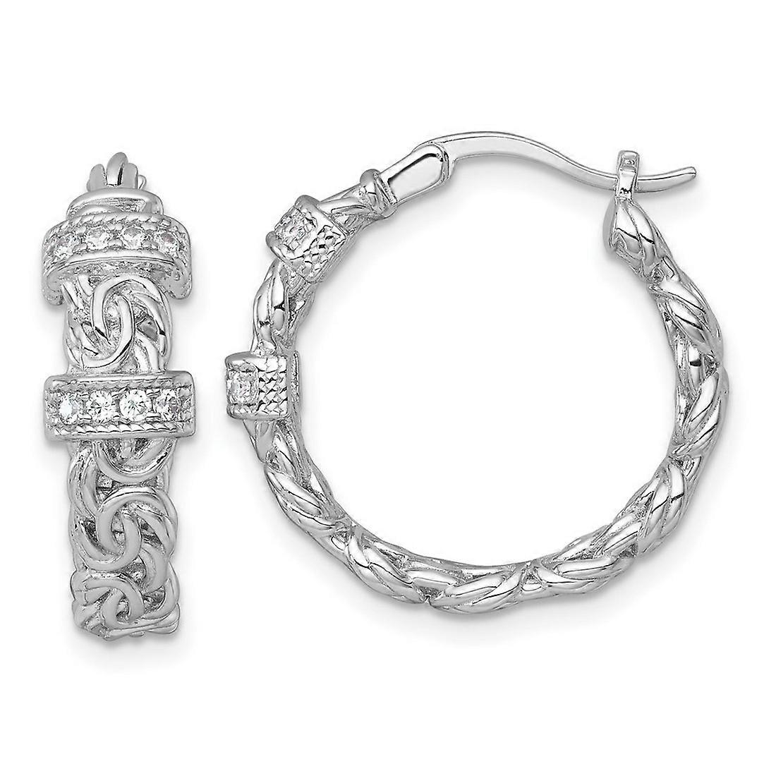 925 Sterling Silver Rhodium Plated Polished Cubic Zirconia Byzantine Link Round Hoop Earrings 22.1x22.4mm Wide 6.9mm Thi