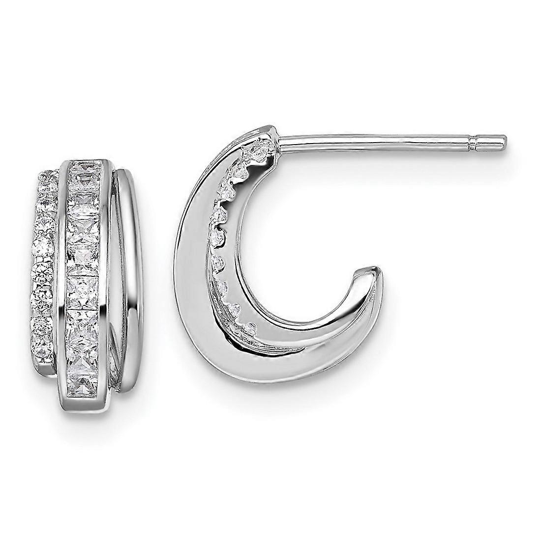9.7mm Sterling Silver Rhodium-plated Polished Cubic Zirconia Post J-hoop Earrings - Measures 11.9x9.7mm Wide 5.4mm Thick - 2.2 Grams In Sterling Silver in Plated Metal - - Thickness: 5.4 mm - Width of Item: 9.7 mm - Length of Item: 11.9 mm - Earring Closure: Post & Push Back - Earring Type: Hoop - Finish: Polished - - [ Potential Enhancement Methods: cubic zirconia ] - Synthetic. Some are covered with a product that makes the stone more durable. - [ Care and Handling: cubic zirconia ] - Clean with warm soapy water and a soft cloth. -