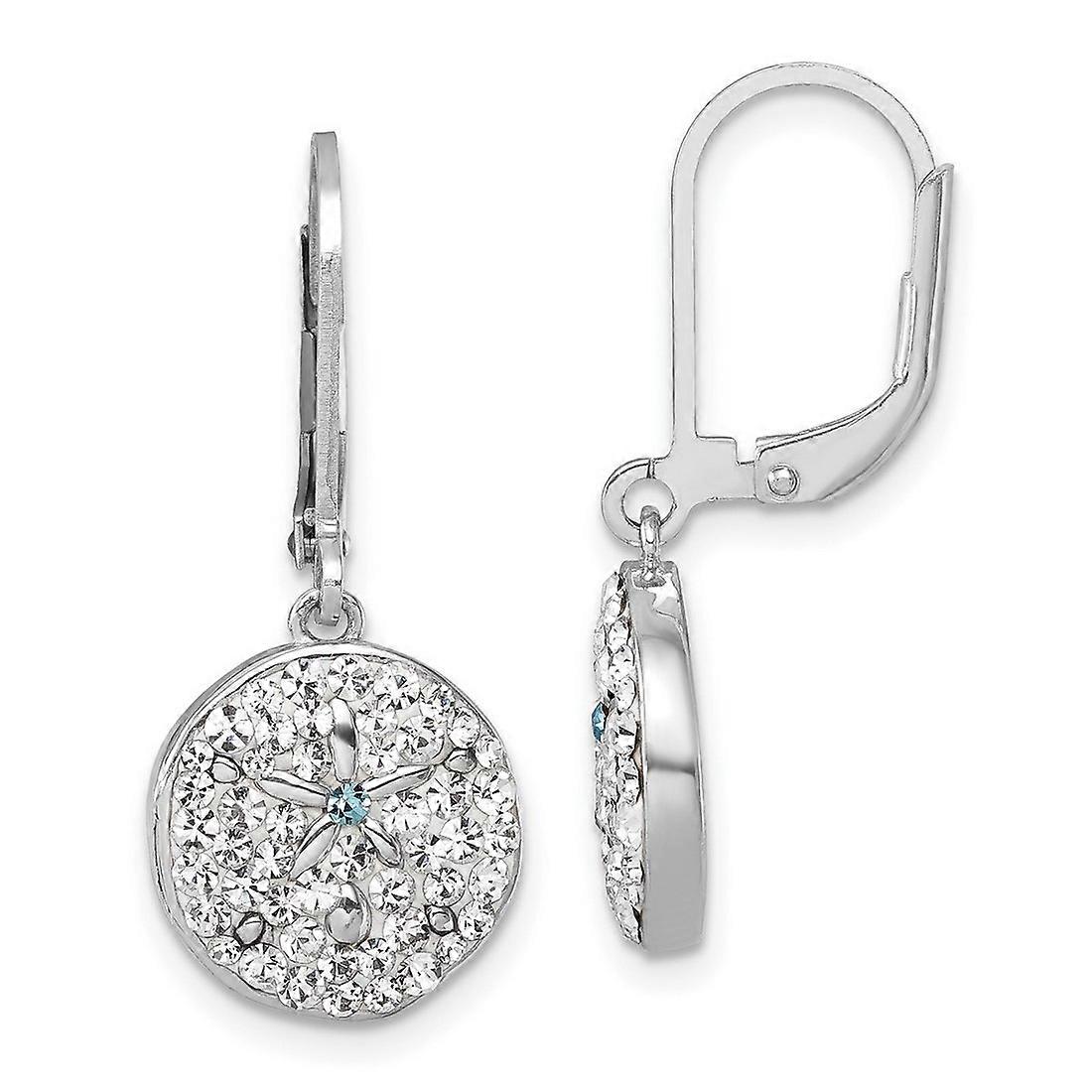 925 Sterling Silver Rhodium Plated Polished Crystal Sand Dollar Long Drop Dangle Earrings 29x12mm Wide-Dangle Earring fo