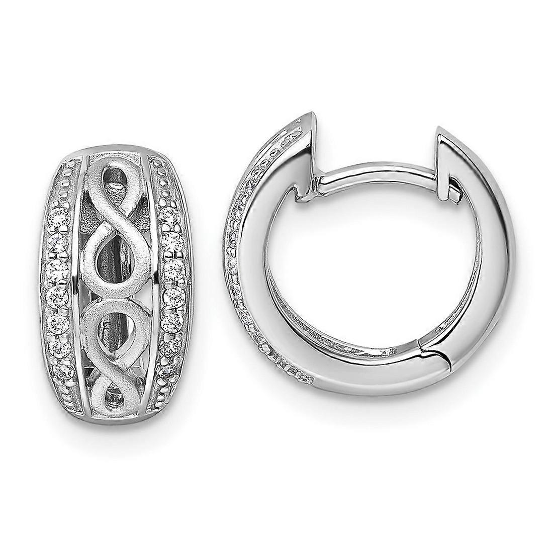 925 Sterling Silver Rhodium Plated Polished and Satin Cubic Zirconia Infinity Hinged Hoop Earrings 13.5x7.1mm Wide 1.8mm