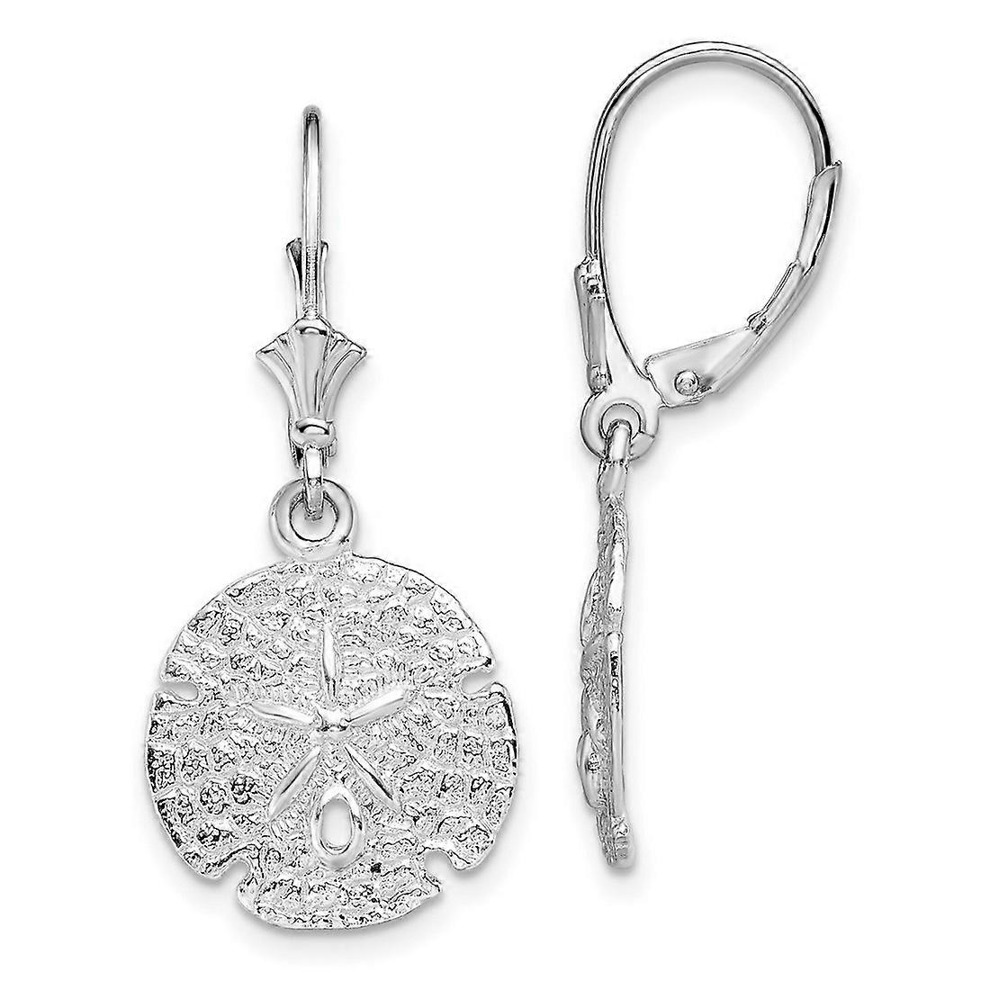 925 Sterling Silver Rhodium Plated Polished Sand Dollar Leverback Earrings 32.88x14.37mm Wide Stud Earring for Women