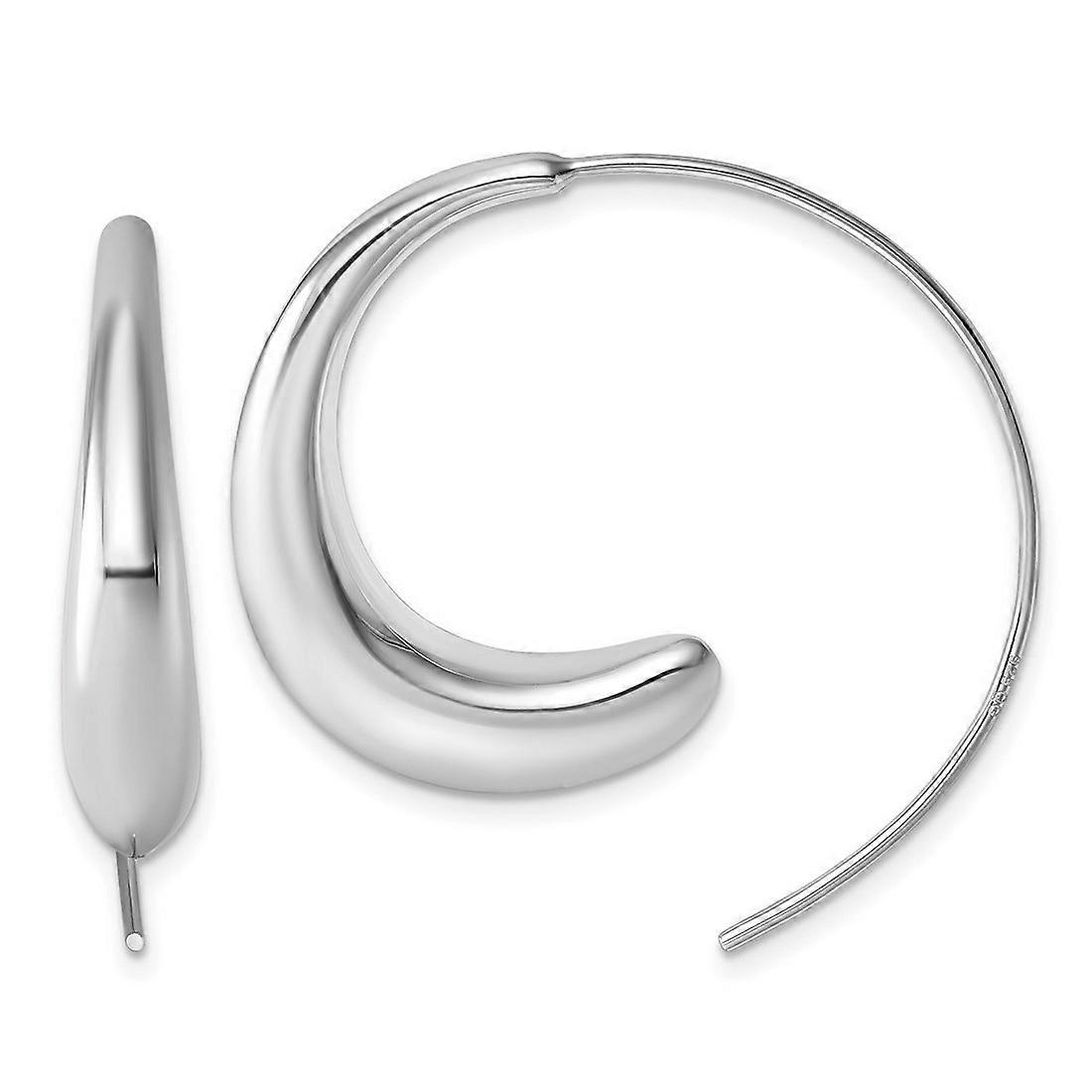 925 Sterling Silver Rhodium Plated Polished Circle Threader Earrings 32.9x6.6mm Wide Stud Earring for Women