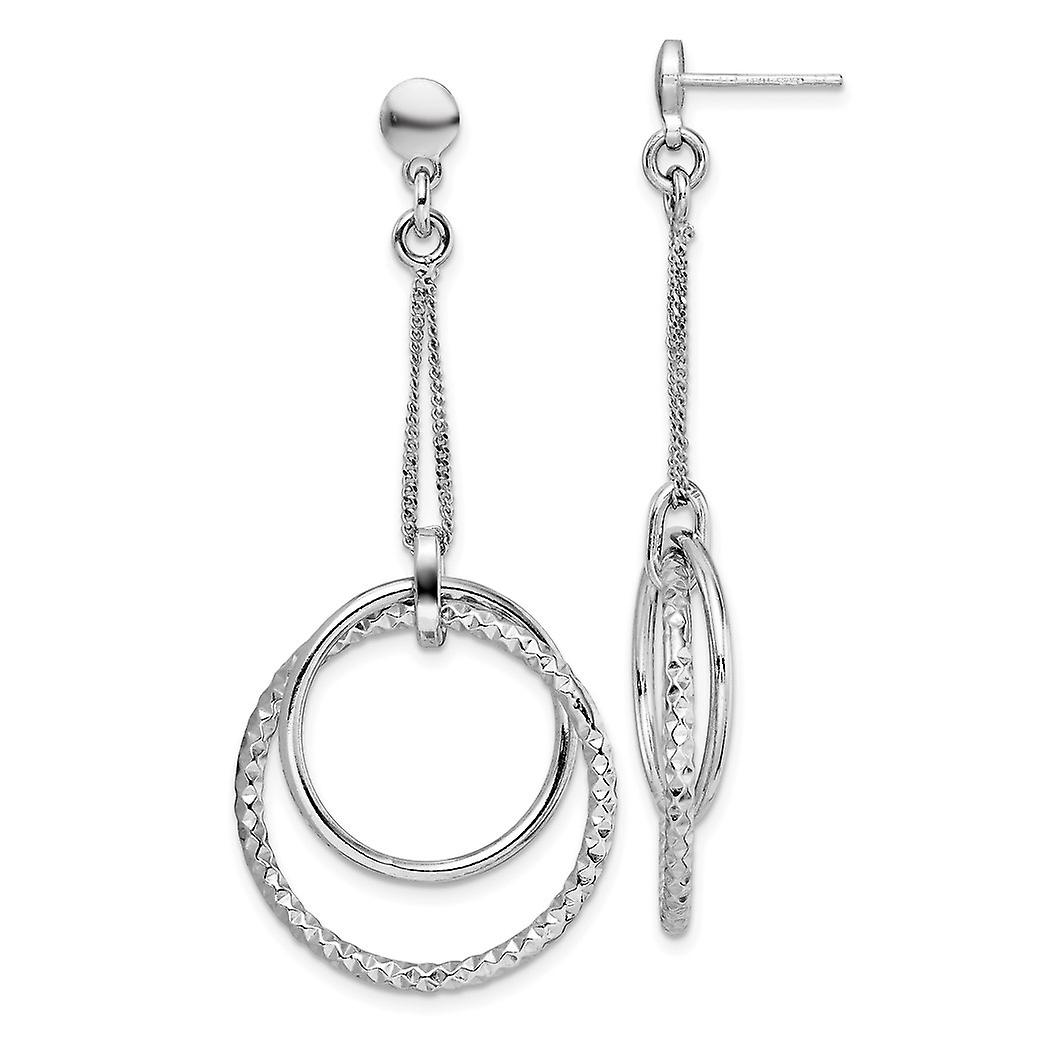 925 Sterling Silver Rhodium Plated Polished Diamond-Cut Post Long Drop Dangle Earrings 58.18x24.9mm Wide-Dangle Earring