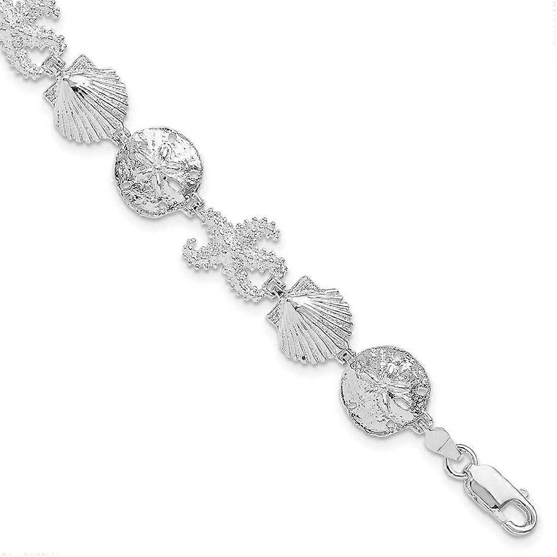 925 Sterling Silver Rhodium Plated Polished Starfish Shell Sand Dollar Bracelet 7.25 Inch Link-Bracelet for Women
