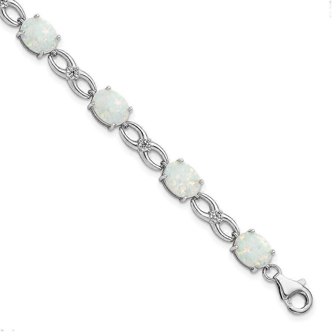 925 Sterling Silver Rhodium Plated Polished White Simulated Opal and Cubic Zirconia Bracelet 7.25 Inch Link-Bracelet for