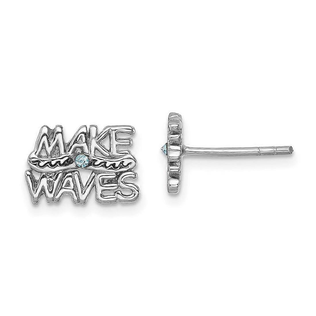 925 Sterling Silver Rhodium Plated Polished Make Waves Crystal Post Earrings 7.7x11mm Wide Stud Earring for Women