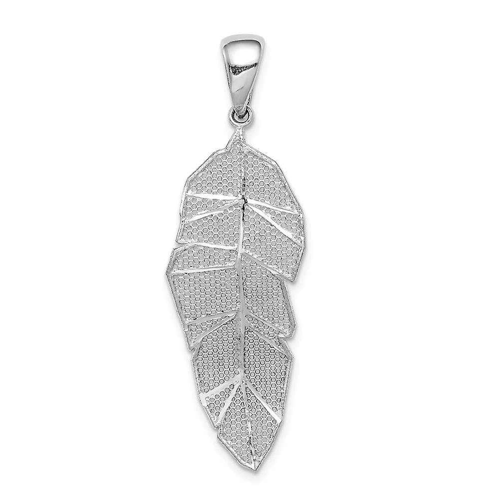 925 Sterling Silver Rhodium Plated Polished Leaf Pendant Necklace-Pendant for Women - 1.1 Grams