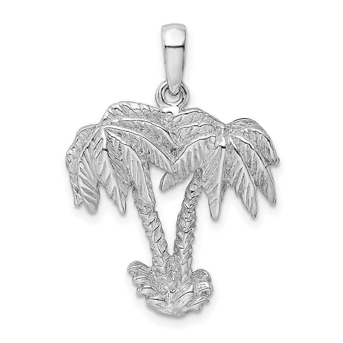 925 Sterling Silver Rhodium Plated Polished Two Palm Trees Pendant Necklace 29.68mm long-Pendant for Women