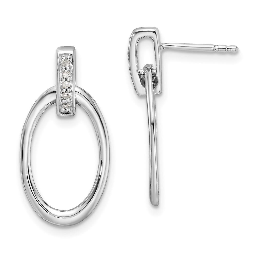 Sterling Silver Rhodium Plated White Ice .05ct. Diamond Oval Post Dangle Earrings - Measures 22.75x11.5mm Wide - 1.8 Grams .05 Carat Diamond Weight In Sterling Silver in Plated Metal - - Width of Item: 11.5 mm - Length of Item: 22.75 mm - Earring Closure: Post & Push Back - Earring Type: Drop & Dangle - Finish: Polished - Feature: Solid - - - [ Care and Handling: diamond ] - Clean with warm soapy water and a soft brush or cloth. -