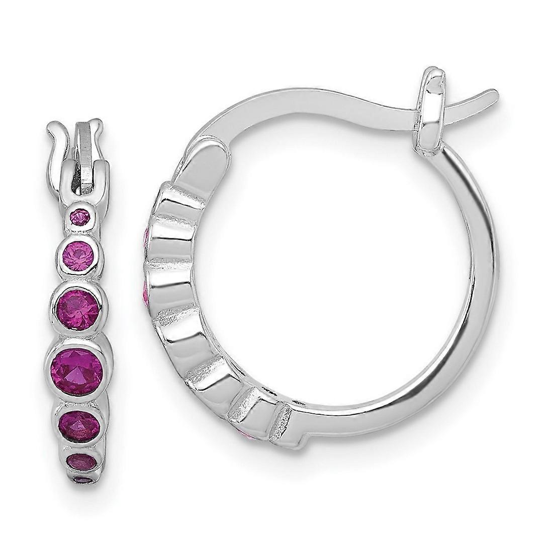 925 Sterling Silver Rhodium Plated Graduated Lab Created Ruby Hoop Earrings 16.7x16.6mm Wide 3.15mm Thick-Hoop Earring f