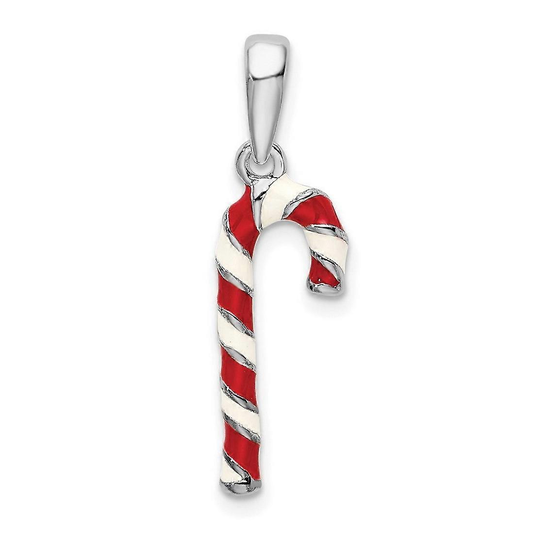 925 Sterling Silver Rhodium Plated 3d Enameled Candy Cane Pendant Necklace-Pendant for Women