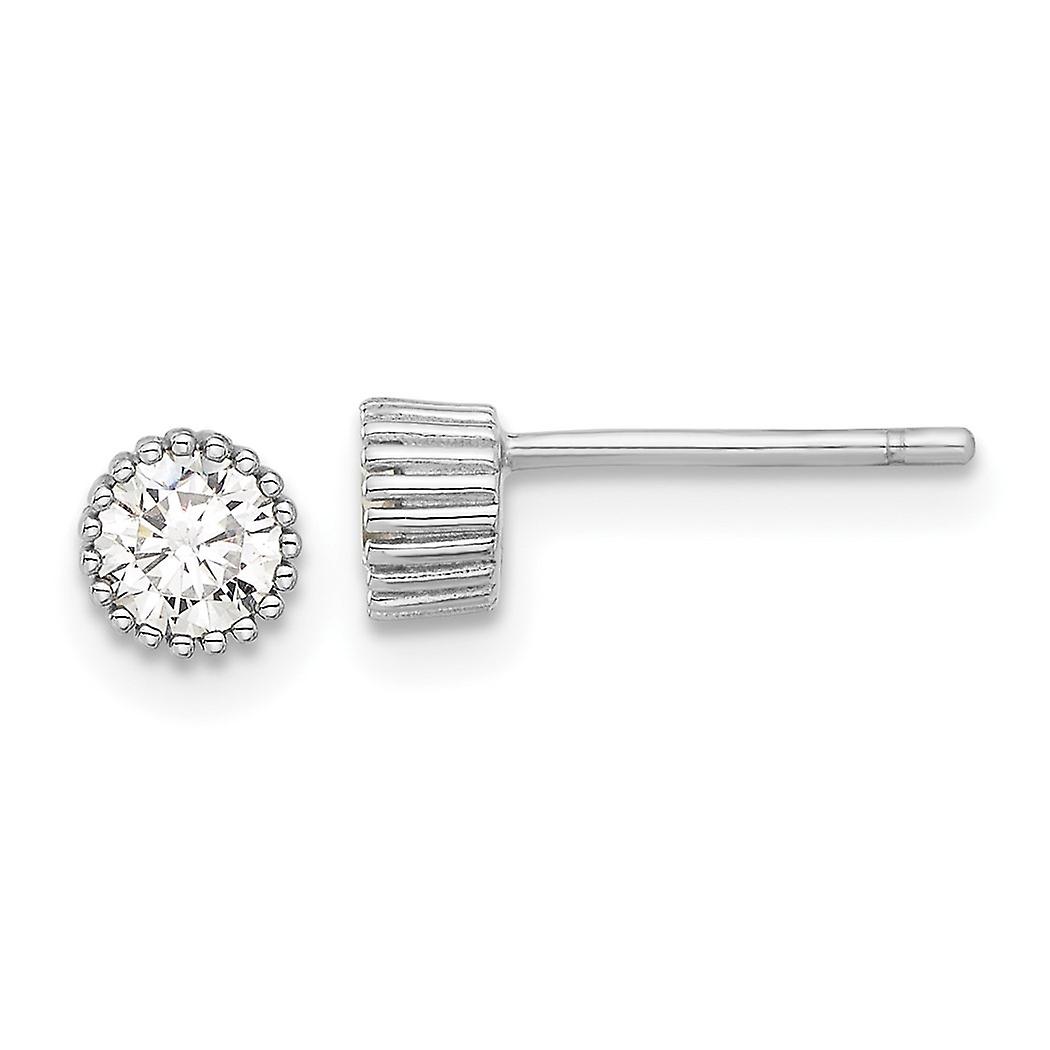 925 Sterling Silver Rhodium Plated 5mm Cubic Zirconia Beaded Bezel Post Stud Earrings 4.85x4.85mm Wide-Stud Earring for