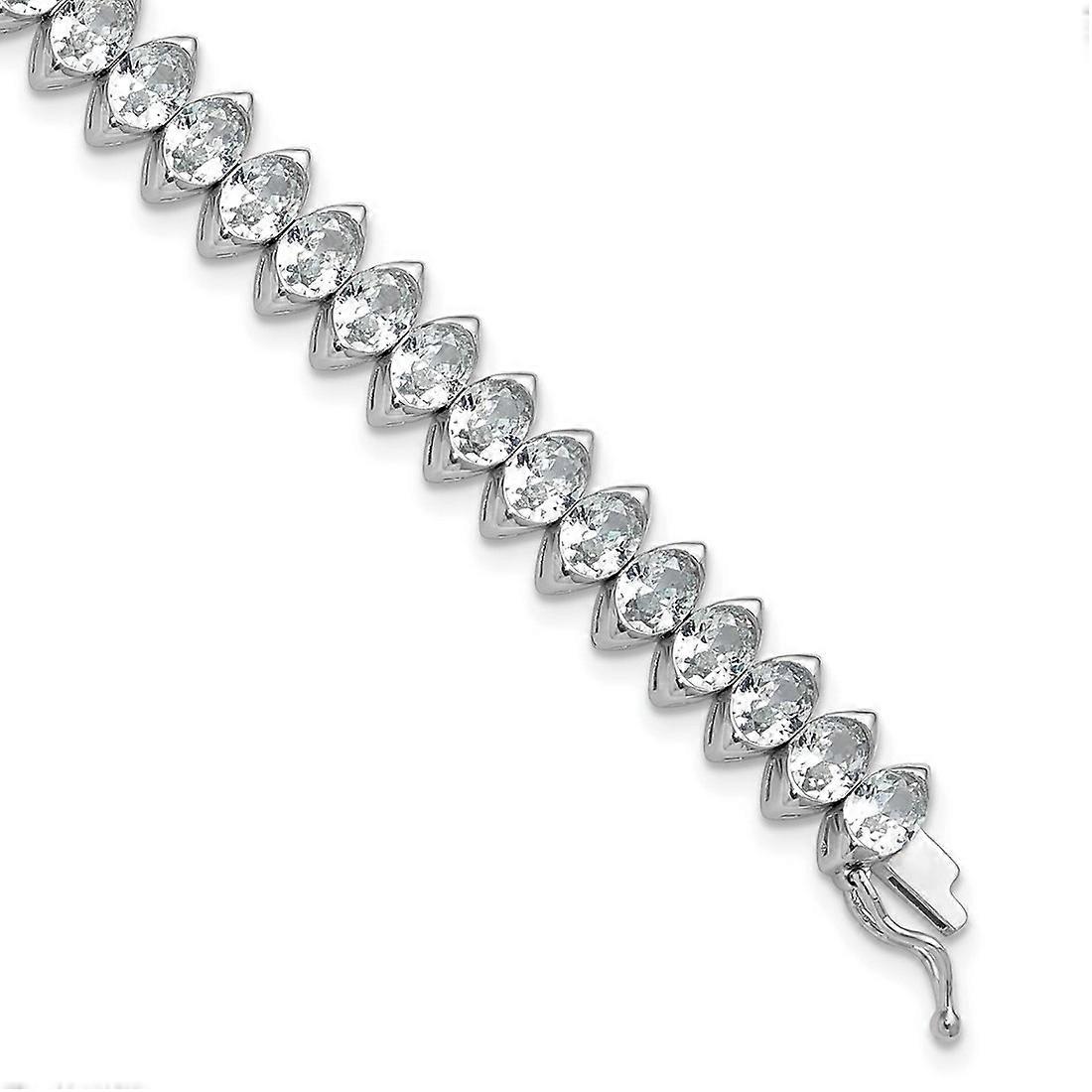 925 Sterling Silver Rhodium Plated 5x4mm Cubic Zirconia Bracelet 7 Inch Link-Bracelet for Women