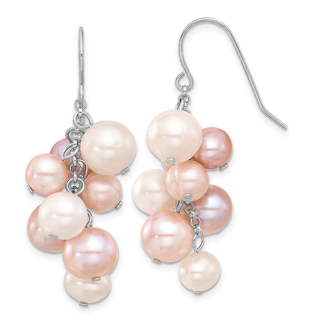925 Sterling Silver Rhodium Plated 6 10mm Multicolor Freshwater Cultured Pearl Long Drop Dangle Earrings 43.7x15.3mm Wid