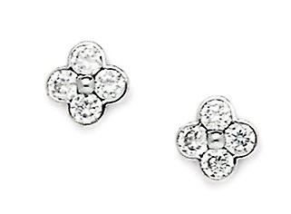 Sterling Silver Rhodium Plated Cubic Zirconia Medium 4 Petal Flower Screw-Back Earrings - Measures 8x8mm - in Sterling Silver Rhodium Plated - - [ Potential Enhancement Methods: cubic zirconia ] - Synthetic. Some are covered with a product that makes the stone more durable. - [ Care and Handling: cubic zirconia ] - Clean with warm soapy water and a soft cloth. -