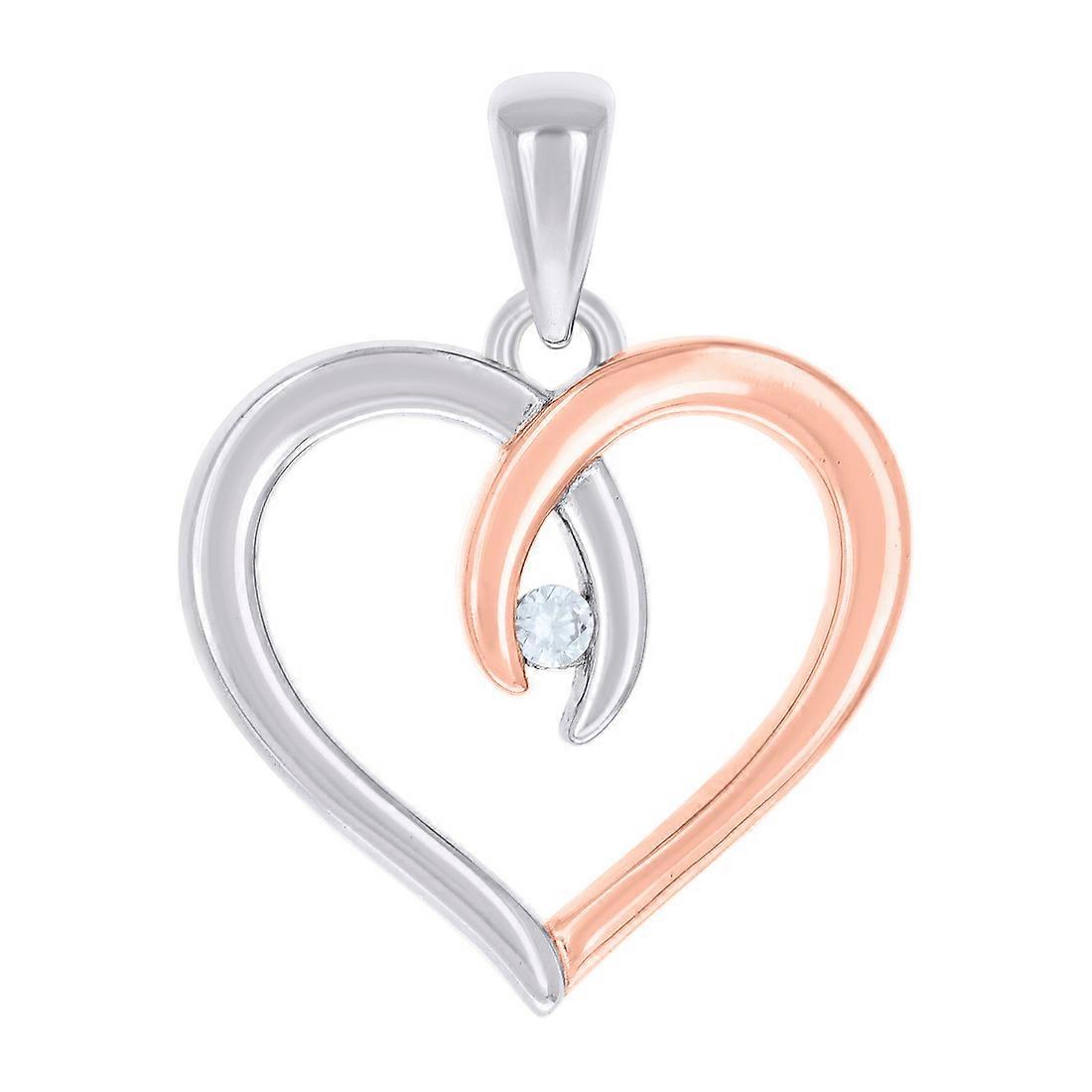 925 Sterling Silver Rose tone Womens Cubic Zirconia Love Heart Pendant Necklace 21x16.9mm Wide-Pendant for Women