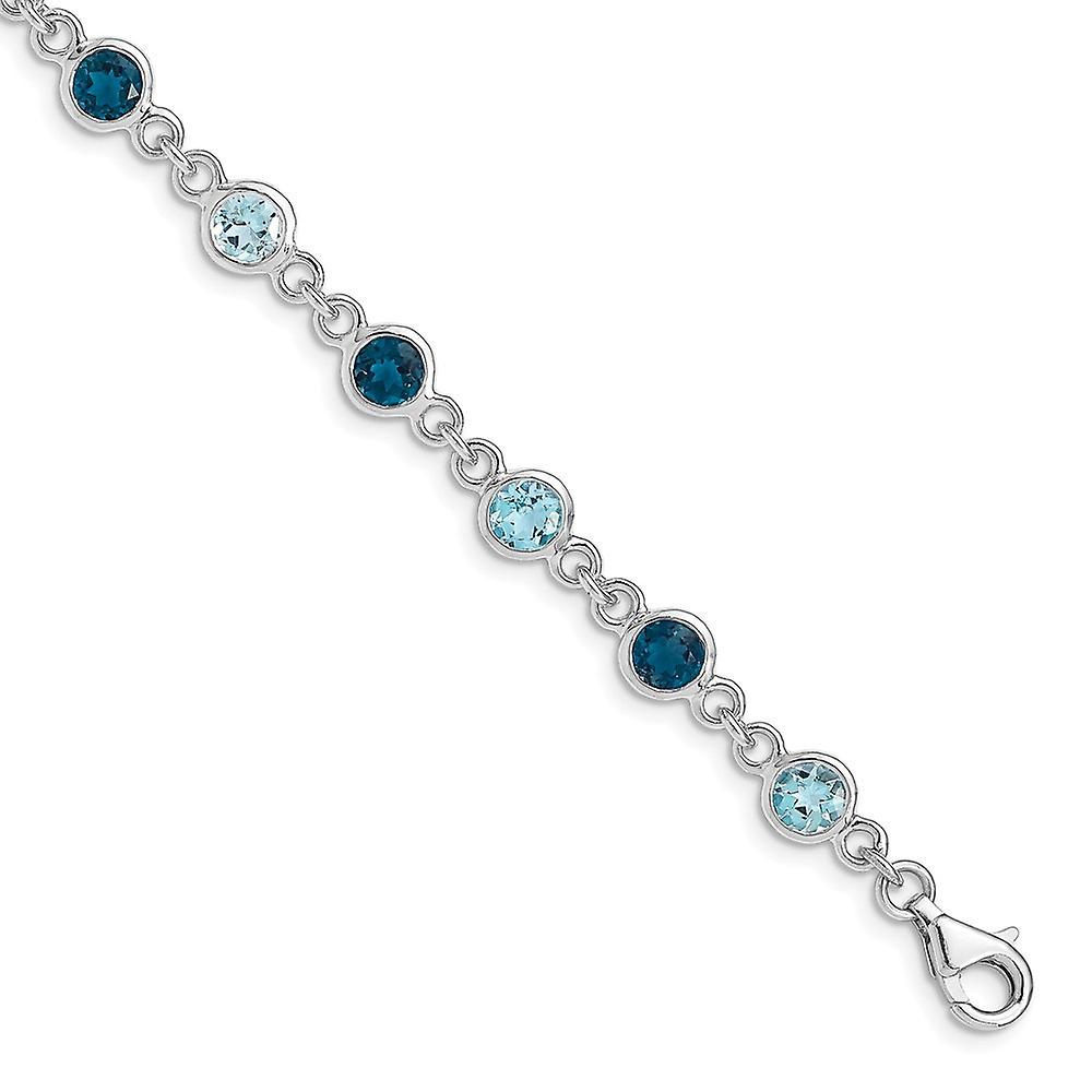 925 Sterling Silver Rhod Plat London and Light Swiss Blue Topaz Bracelet 8 Inch 6.44mm Wide Link-Bracelet for Women