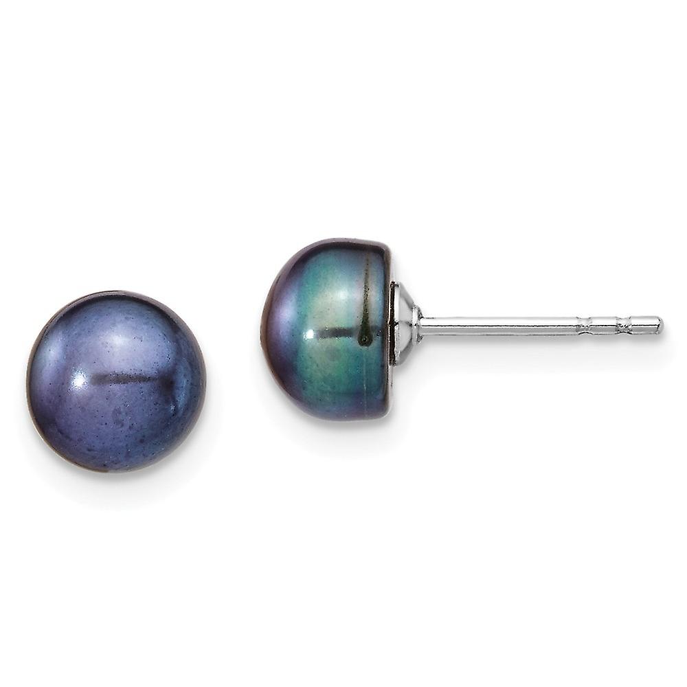 925 Sterling Silver Rhod Plat 6 7mm Black Pearl Dangle Necklace Earrings Set Jewelry-Set for Women