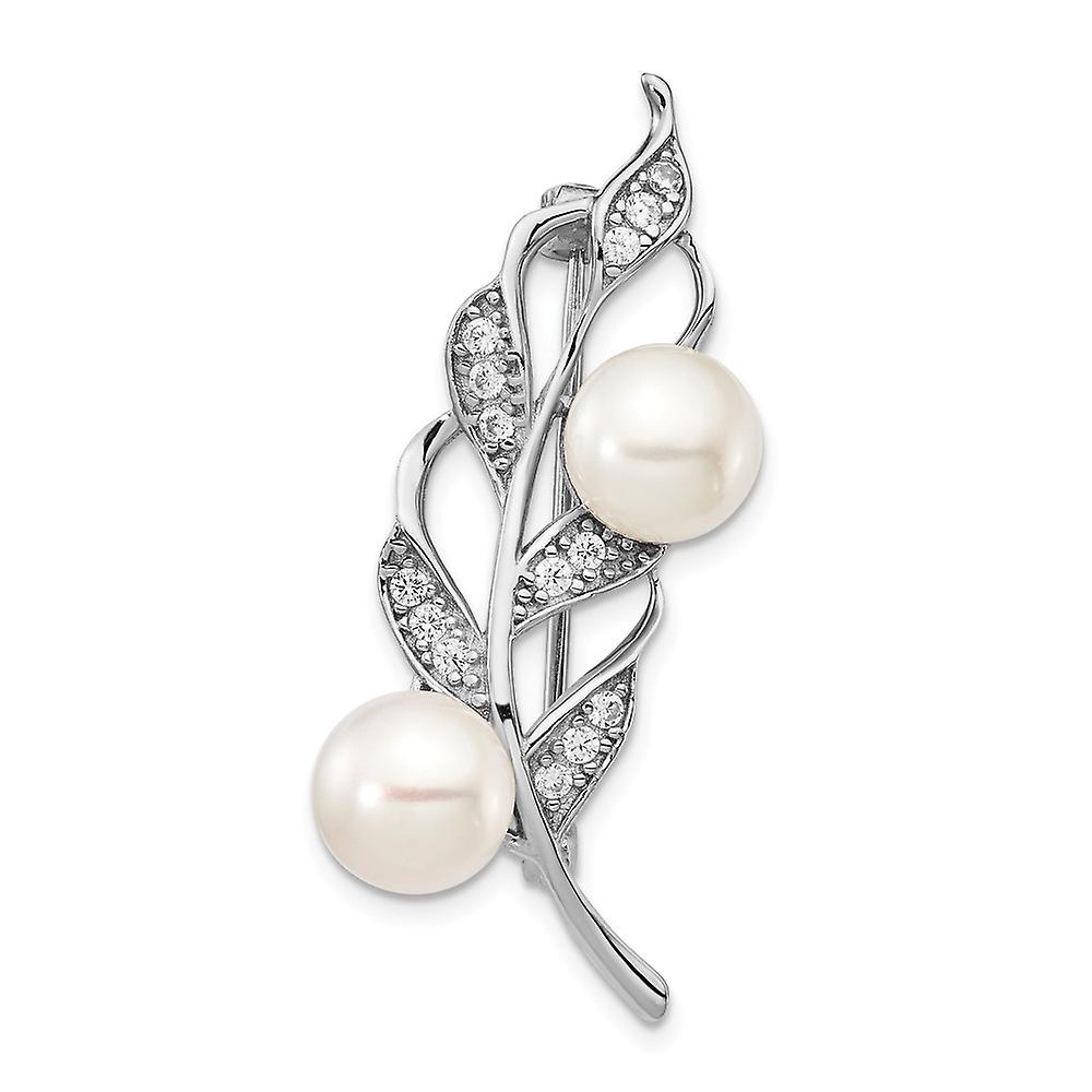 925 Sterling Silver Rhod Plat 7 8mm White Button Freshwater Cultured Pearl Cubic Zirconia Brooch Pin Brooches and-Pin fo