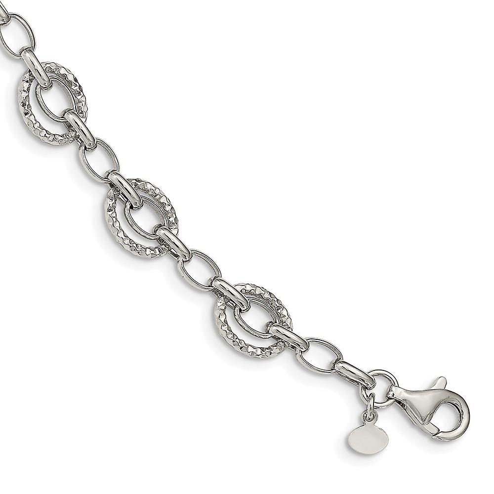 925 Sterling Silver Rhod Plated Polished and Hammered Bracelet 7.5 Inch Link-Bracelet for Women