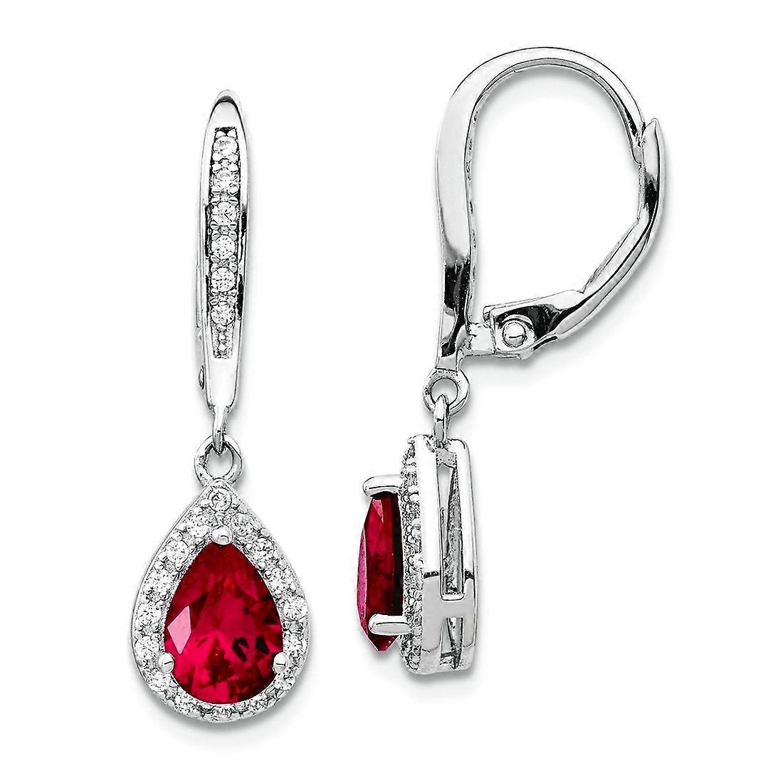 925 Sterling Silver Created Ruby Leverback Earrings 27.33x7.68mm Wide Stud Earring for Women