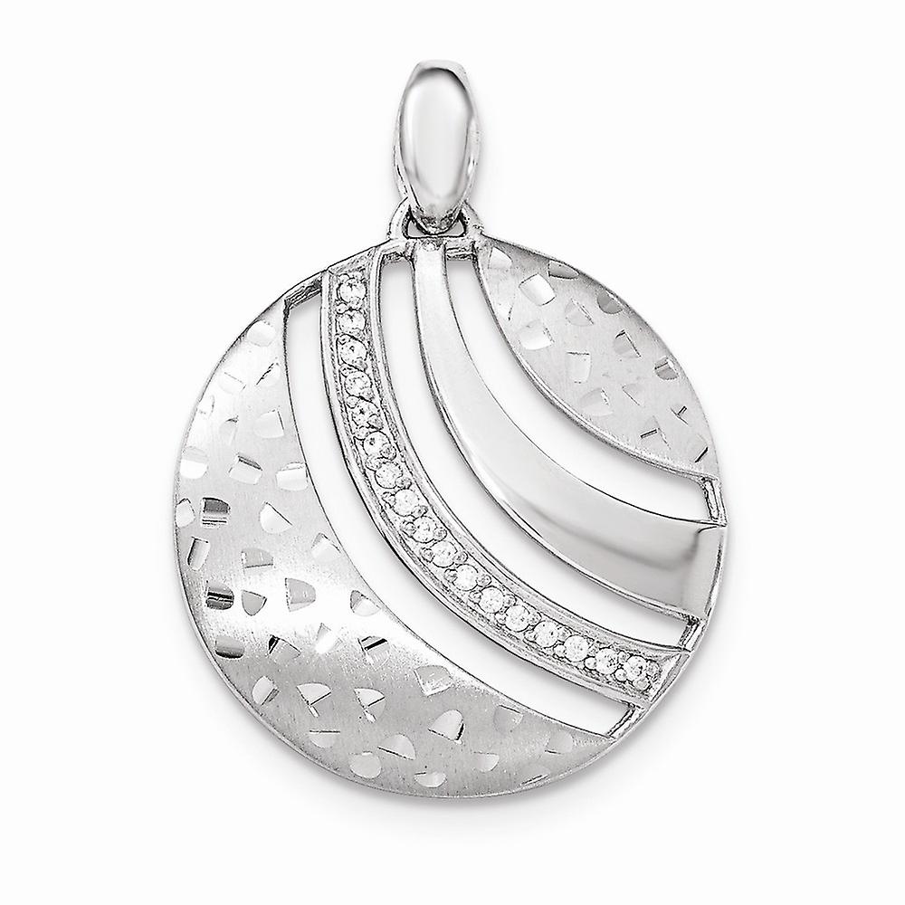 925 Sterling Silver Polished and Textured With Cubic Zirconia Pendant Necklace-Pendant for Women