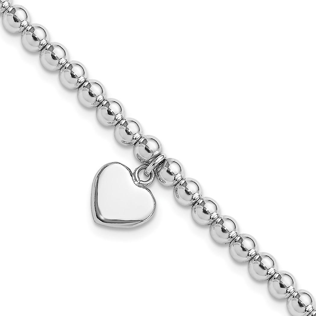 925 Sterling Silver 4mm Beaded Dangle Love Heart Bracelet 7.5 Inch Link-Bracelet for Women