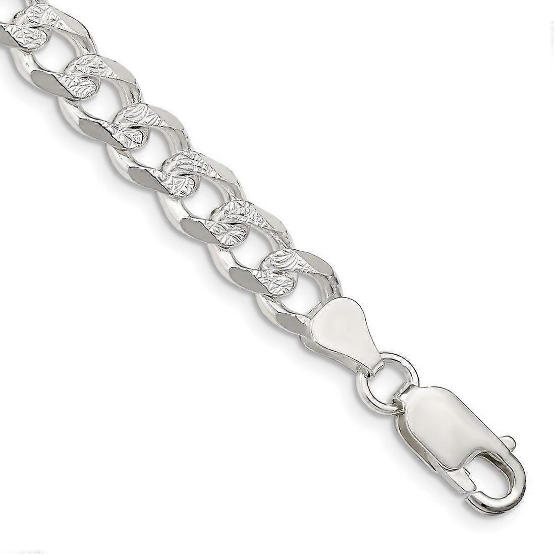 925 Sterling Silver Solid Polished 7.5mm Pave Curb Chain Bracelet Lobster Claw Link-Bracelet for Women and Men - Length: